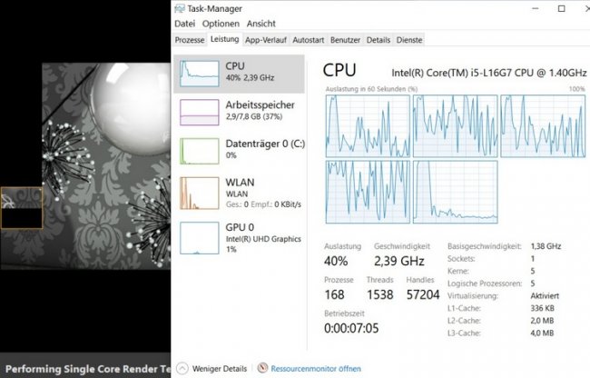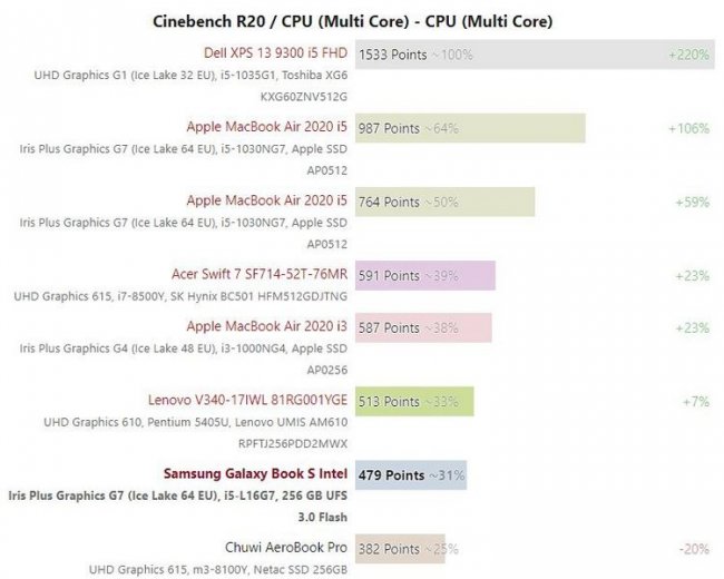 Как выяснили обозреватели, в тестируемом Galaxy Book S с заявленными частотами процессор работать не может. Максимальная частота при однопоточной нагрузке составила 2,4 ГГц. По всей видимости, система не смогла справиться с охлаждением чипа, и ему не удалось раскрыться на полную.