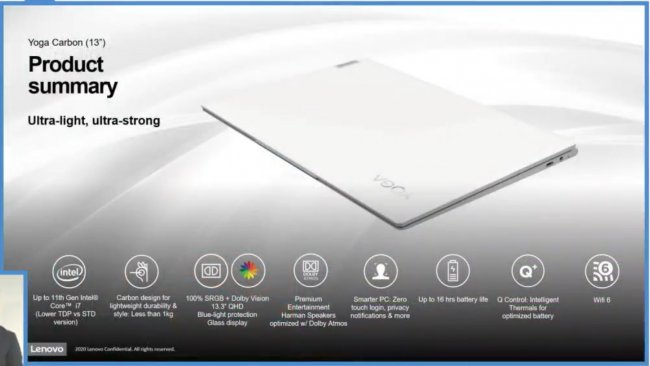 Сетевые источники сообщают о готовящемся к выпуску новом 13-дюймовом ультрабуке Lenovo Yoga Carbon серии Yoga Slim 7 на базе процессора Intel Core i7 11-го поколения Tiger Lake-U.