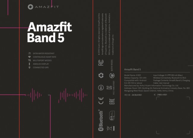 Обычно в базе данных этого регулятора не содержится много информации о продуктах, которые в скором времени должны быть официально представлены на рынке, но в этом случае повезло. Оказалось, что под номером A1931 скрывается фитнес-браслет Amazfit Band 5. Кроме того, в сопроводительных документах оказалось изображение будущей розничной упаковки устройства.