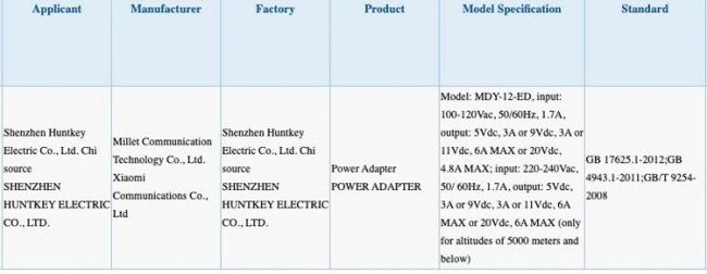 Интернет-источники сообщают о том, что на китайском сертификационном сайте 3C (China Compulsory Certificate) обнародована информация о новом зарядном устройстве Xiaomi, которое обеспечит сверхбыстрое восполнение запаса энергии в будущих смартфонах.