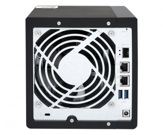 Устройство рассчитано прежде всего на офисное использование. Высокую производительность при передаче данных через компьютерные сети обеспечивают порты 10 Gigabit Ethernet (10GbE SFP+) и 2.5 Gigabit Ethernet (2.5G/1G/100M). Плюс к этому доступен разъём Gigabit Ethernet (RJ45).