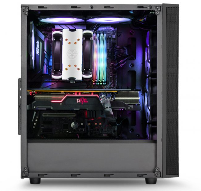 При необходимости можно задействовать систему жидкостного охлаждения: в этом случае спереди можно разместить 280-мм радиатор, сверху — 240-мм, сзади — 120-мм. Ограничение по высоте процессорного кулера составляет 165 мм.