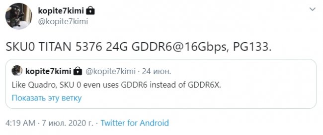 С приближением анонса видеокарт NVIDIA нового поколения, который должен состояться когда-то во второй половине 2020 года, слухов и утечек о новинках становится всё больше. На этот раз сетевой источник с псевдонимом Kopite7Kimi, который прежде уже отметился правдивыми утечками о продуктах NVIDIA, поделился информацией о характеристиках видеокарт на базе архитектуры Ampere. Но начнём с того, что не так давно в Сети появилась информация о том, что видеокарта GeForce RTX 3080 будет построена на старшем из потребительских графических процессоров Ampere — GA102. Необычно здесь то, что видеокарты GeForce GTX/RTX xx80 последних трёх поколений были построены на чипах среднего звена xx104. А вот старшие графические процессоры xx102 использовались во флагманских моделях xx80 Ti. Например, GeForce RTX 2080 построена на Turing TU104, тогда как GeForce RTX 2080 Ti использует TU102. В свою очередь графический процессор GA104 в полноценной версии со всеми 3072 активными ядрами CUDA (GA104-400), согласно последним данным, получит видеокарта GeForce RTX 3070 Ti (или Super). Стоящая на ступень ниже GeForce RTX 3070 получит несколько урезанную версию данного GPU — GA104-300 с 2944 ядрами CUDA. Ещё сообщается, что эти видеокарты будут обладать весьма внушительным энергопотреблением: 250 Вт — у GeForce RTX 3070 Ti и 220 Вт — у GeForce RTX 3070. Информация сайта - «scanpin.ru» В свою очередь видеокарта GeForce RTX 3060 будет довольствоваться стоящим на ступень ниже чипом GA106-300. Кроме того, NVIDIA выпустит новый Titan на базе Ampere, который получит некий графический процессор с 5376 ядрами CUDA и сразу 24 Гбайт памяти GDDR6 с пропускной способностью 16 Гбит/с. Заметим, что перевод GeForce RTX 3080 на старший GA102, по данным источника, обусловлен в первую очередь не необходимостью увеличить производительность, а желанием наделить её большим объёмом памяти. В случае с чипом GA104 имеется два основных варианта: 10 Гбайт в сочетании с шиной на 320 бит и 16 Гбайт с 256-битной шиной. Первый вариант выглядит незначительным по сравнению с актуальными 8 Гбайт, а второй — наоборот избыточным. А вот чип GA102 позволит подключить 11 Гбайт памяти по 352-битному интерфейсу, что выглядит оптимальным вариантом. Хотя также не исключён вариант с теми же 10 Гбайт и 320-битной шиной. Также сообщается, что оперативная память, используемая в видеокартах NVIDIA нового поколения, будет достигать пропускной способности в 21 Гбит/с на контакт. Это будут чипы типа GDDR6X. Что интересно, ни один из производителей памяти ещё не анонсировал микросхемы данного типа, так что, возможно, что видеокарты с подобной памятью появятся позже. Например, это могут быть модели GeForce RTX 3000 Super, которые выйдут через 1–1,5 года после оригинальных моделей. А вот последние могут получить более скромную память, с пропускной способностью 18, 19 или 20 Гбит/с. :