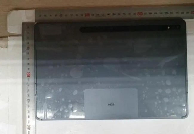 Судя по фото, планшет получит металлическую заднюю крышку, двойную основную камеру со светодиодной вспышкой и динамики AKG, о чём, вероятно, и свидетельствует маркировка на задней части. Фронтальная камера, как и на младшем варианте, будет расположена на одной из длинных рамок планшета, что логично, поскольку устройства таких габаритов чаще всего используются в альбомной ориентации. Дополнительные датчики возле фронтального объектива не видны, однако это можно списать на не самое лучшее качество снимков.
