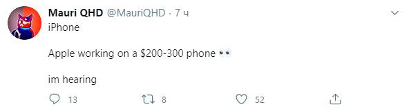 Ещё один слух от этого же блогера касается смартфонов iPhone. Точнее, модели, цена которой будет варьироваться в пределах $200–300. Каким будет этот аппарат, когда увидит свет (если увидит) и какие характеристики получит, пока также выяснить не представляется возможным. Но можно предположить, что купертинцы пойдут по пути, проторённому в случае с iPhone SE и SE 2. Иными словами, возьмут за основу одну из прежних моделей iPhone. Возможно, эта новинка станет попыткой Apple расширить влияние на индийском рынке, где сейчас её доля, несмотря на наличие локального производства, не превышает 1 %. В Индии обладание даже не самым дорогим «яблочным» смартфоном iPhone XR считается символом высокого социального статуса.