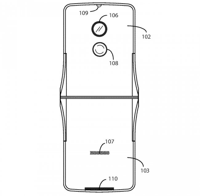 Управление США по патентам и торговым маркам (USPTO) выдало компании Motorola патент на новый смартфон, конструкция которого включает шарнирное сочленение и гибкий дисплей.