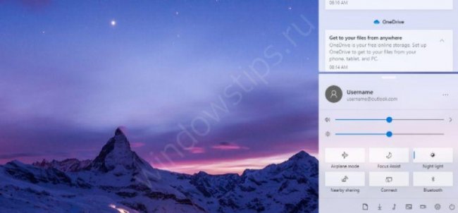 - изменения коснулись и центра уведомлений. Разработчики решили убрать его из раздела "Параметры" и перенести его под юрисдикцию быстрых действий. В центр уведомлений включили настройку громкости, работу режима энергопотребления и уровень зарядки ПК.