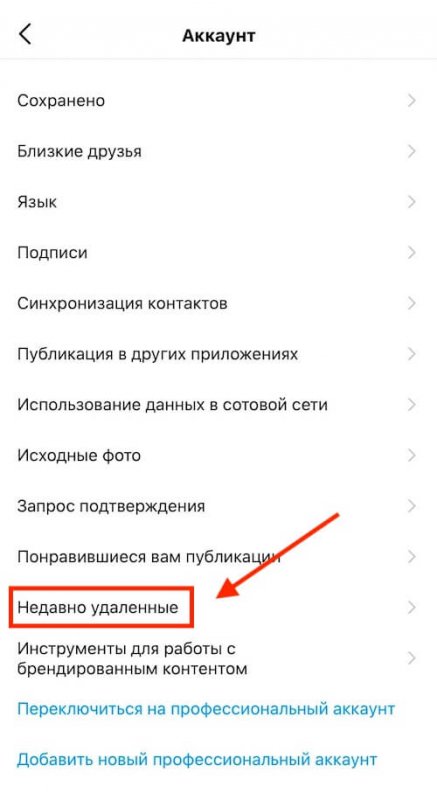 Чтобы восстановить удалённую публикацию, перейдите раздел «Настройки — Аккаунт — Недавно удалённые».