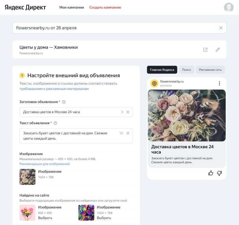 Объявление будет показано в поиске, на главной странице Яндекса и в Рекламной сети. Посмотреть результаты рекламной кампании можно будет на её странице в Директе. Там отображаются показы, клики, конверсии и другие важные показатели, такие как расходы на рекламу и достижение поставленной цели — например, привлечение заявок или звонков.