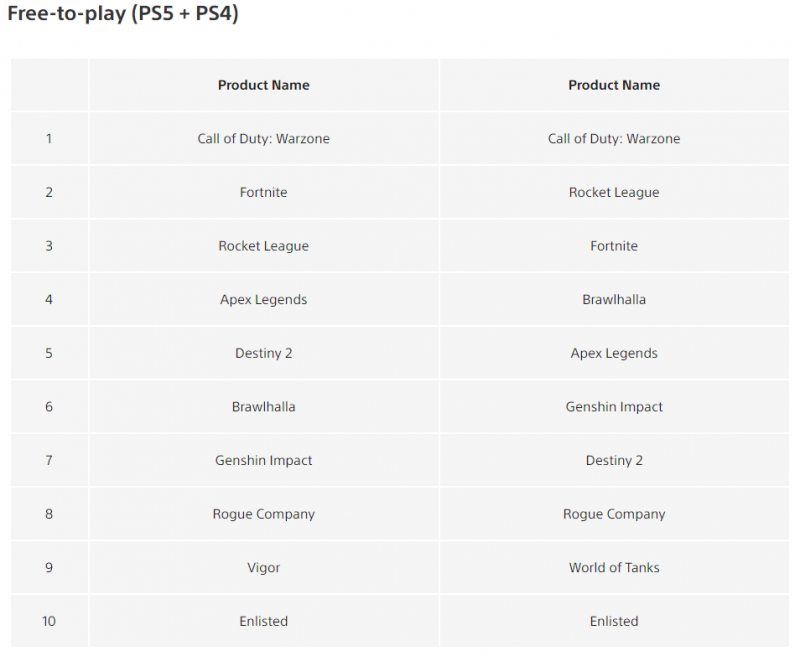 В условно-бесплатном сегменте PS Store победа в двух регионах досталась Call of Duty: Warzone. Далее идут Fortnite и Rocket League.