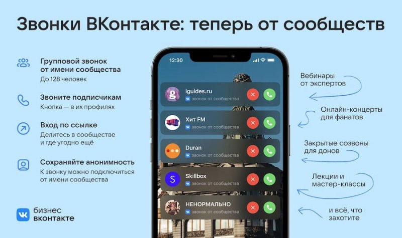 ВКонтакте представили звонки от сообществ своим подписчикам. Это могут быть как аудио-, так и видеозвонки, одному подписчику или же группе людей.