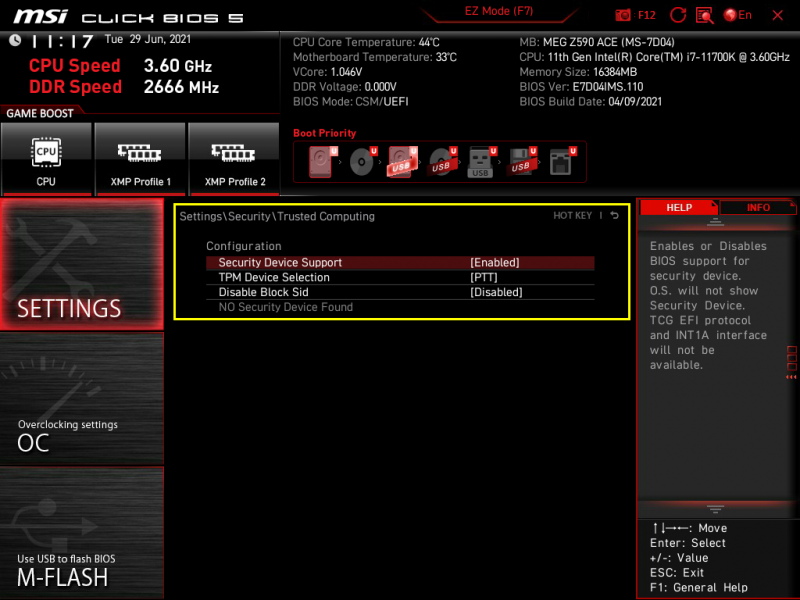 Компания рекомендует зайти в BIOS материнской платы и включить программную эмуляцию TPM, поскольку на большинстве плат она выключена по умолчанию. У моделей Intel функция называется PTT, а у моделей AMD — fTPM. В первом случае нужно выбрать «Enabled», во втором — «Firmware TPM»