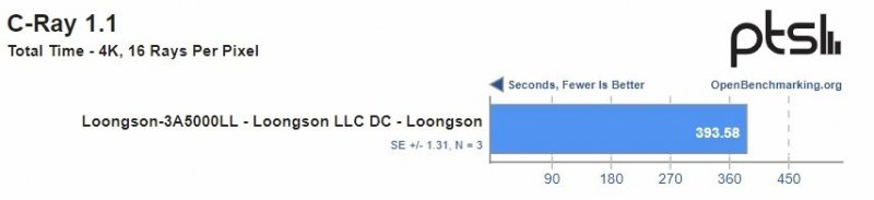 По сравнению с современными решениями компаний AMD, Intel и Arm производительность модель Loongson3A5000LL не сильно впечатляет. Например, с бенчмарком C-Ray китайский процессор справился примерно за 393 секунды, что гораздо медленнее конкурентов.