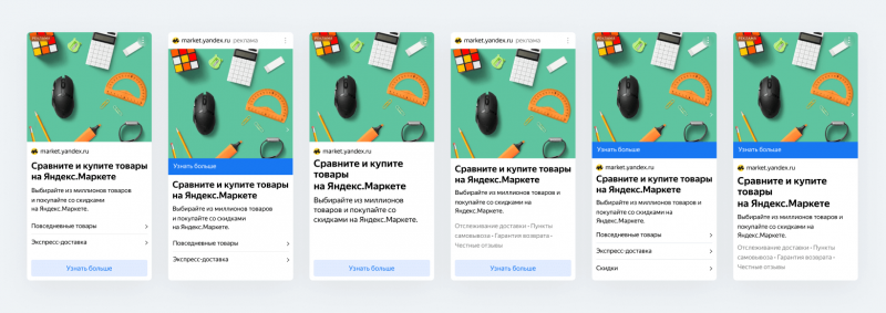 Яндекс запустил новую технологию для Рекламной сети — Smart Design, которая работает на основе машинного обучения. Она автоматически собирает объявления с разными дополнениями для каждого показа.