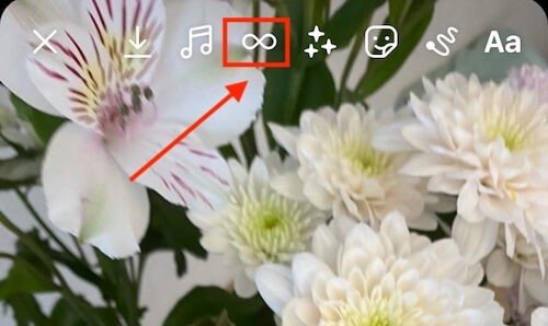 - После добавления фото в сторис, нажмите на значок бумеранга на верхней панели.