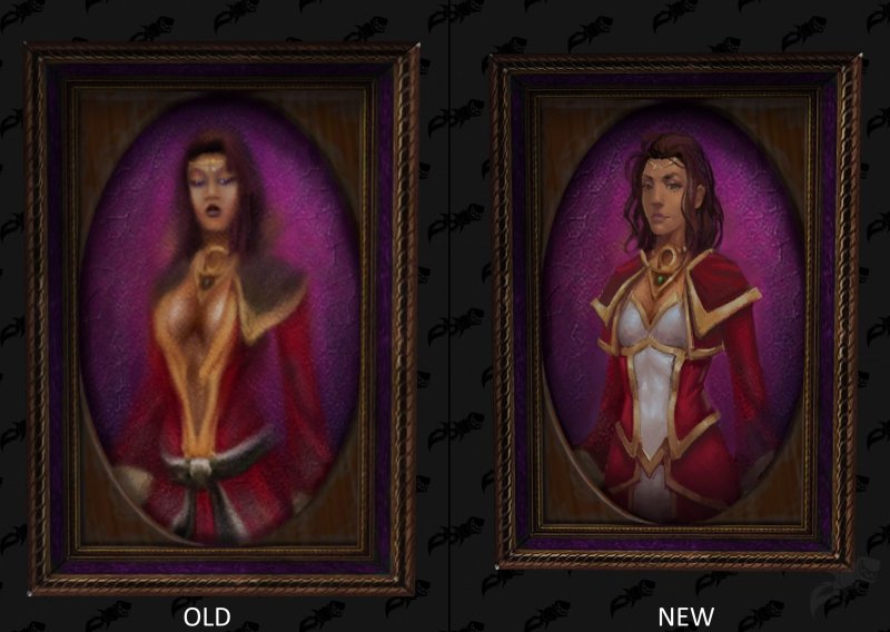 Второй портрет находился в поместье гильдии «Чёрный ворон» и изображал женщину в мантии с глубоким вырезом на груди. Это изображение решили переработать. Blizzard сделала наряд менее откровенным, а также перерисовала лицо девушки.