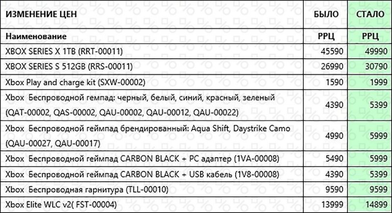 Ранее в Сети появилась таблица с новыми ценами на приставки и аксессуары. В частности, помимо консолей подорожают беспроводные геймпады Xbox, фирменная беспроводная гарнитура Xbox, а также дополнение к геймпаду Microsoft Xbox One Play & Charge Kit.