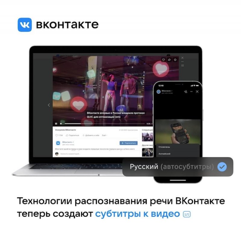 В обновлённом видеоплеере ВКонтакте появились автоматические субтитры на русском языке. Они созданы на базе собственных технологий соцсети по распознаванию речи.