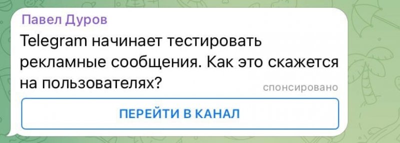 Недавно, Telegram запустил тестирование своей рекламной платформы и в мессенджере стали появляться рекламные сообщения.