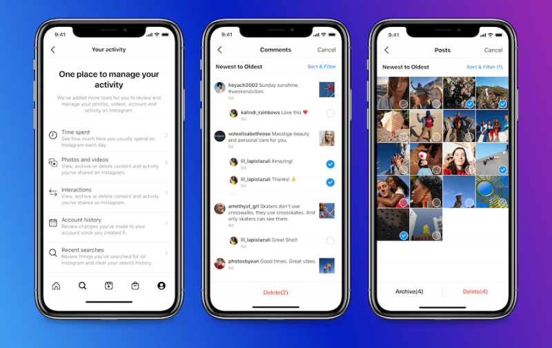 Массовое удаление контента. Подростки получат возможность массово удалять размещенный ими контент (фото и видео), а также предыдущие лайки и комментарии. Таким образом они смогут управлять тем, какой цифровой след они оставят. Эта функция станет доступна всем пользователям.