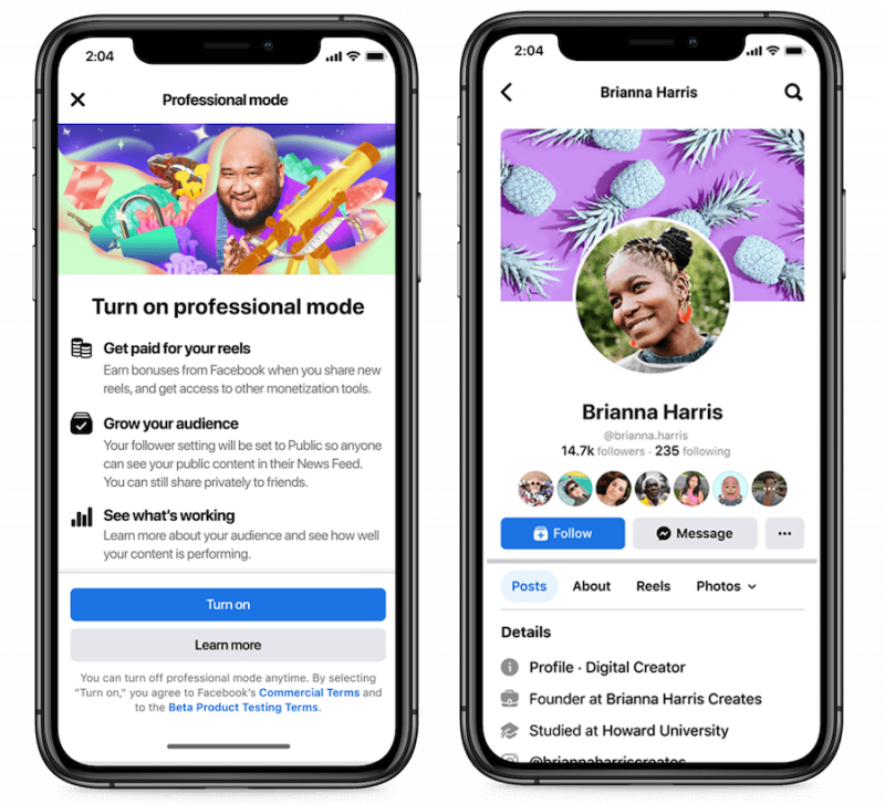 Facebook работает над тем, чтобы предоставить больше возможностей авторам в своём приложении и запускает «Профессиональные аккаунты» (аналог аккаунта автора в Инстаграм).