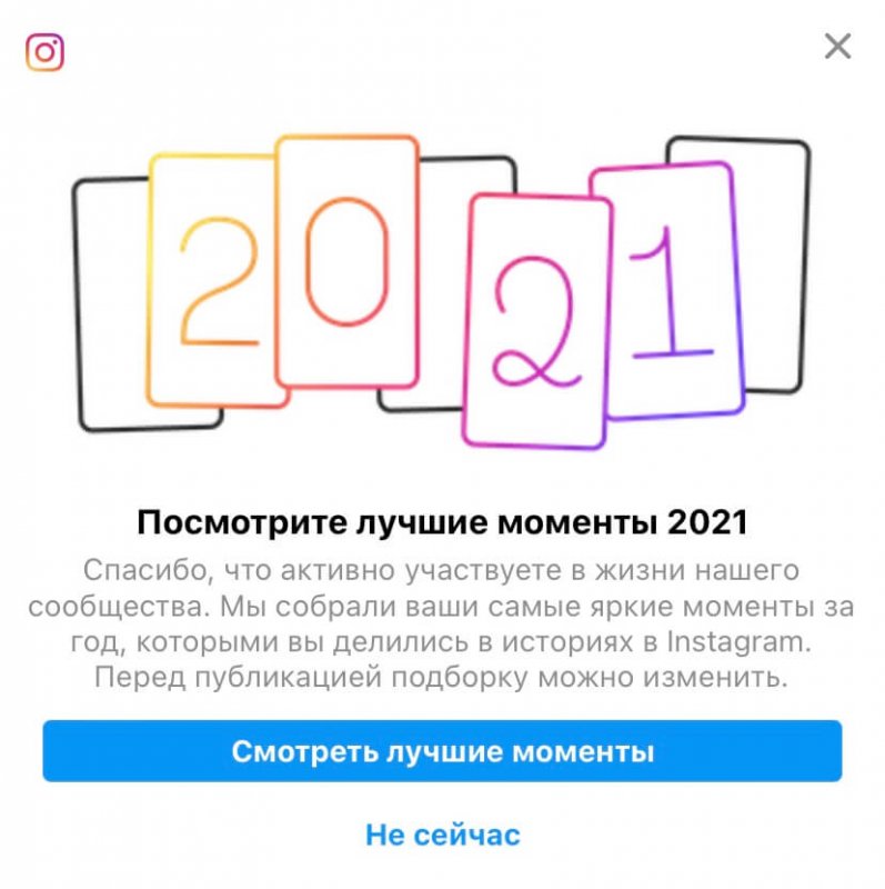 Instagram представил функцию «Лучшие моменты», которая собирает самые яркие моменты за 2021 год, которыми вы делились в историях.