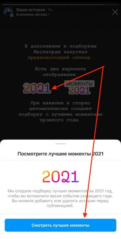 Кроме того, в сторис добавили стикер «2021» — у него два вариант отображения, менять которые можно кликая по стикеру.