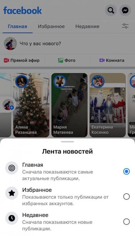 Другой вариант развития, это разделение основной ленты, как это сейчас реализовано в Фейсбуке. Есть основная лента, но можно переключиться на публикации от избранных авторов или посмотреть контент в хронологическом порядке.