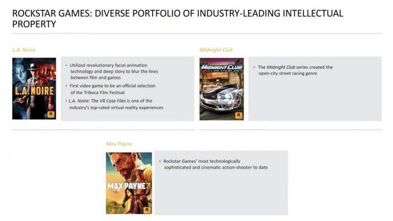 Какие именно серии собралась продолжать Take-Two, Зельник не уточнил, но, как отмечает портал DualShockers, на презентации вслед за словами руководителя последовал слайд (см. выше) с упоминанием таких франшиз, как L.A. Noire, Max Payne и Midnight Club.