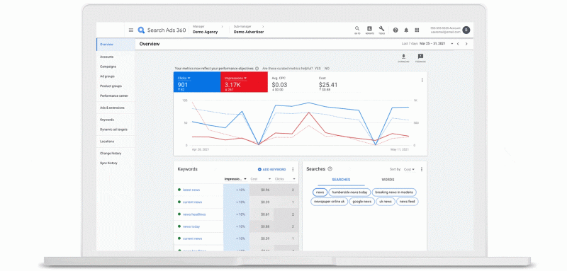 Обновленный интерфейс Search Ads 360 похож на инструменты поисковых систем Google Ads и Microsoft Advertising — платформ, с которыми многие рекламодатели уже работают. Это ускоряет навигацию, повышает производительность и облегчает управление рекламными кампаниями.