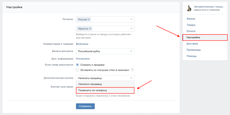 Как добавить кнопку «Позвонить» в карточку товара в ВК