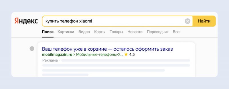 - Для показа объявлений пользователям, которые максимально мотивированы на покупку. Например, только тем, кто положил выбранный телефон в корзину на сайте, но не купил его, а на следующий день ввел в поиске «купить телефон». Таких пользователей можно подталкивать к покупке объявлениями с текстом «Осталось лишь оплатить выбранный телефон».