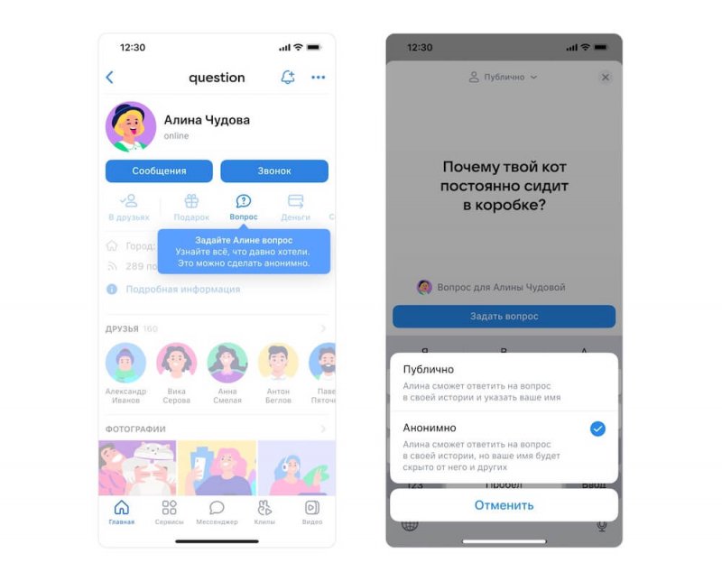 Спрашивать можно публично или анонимно. Вопрос больше никто не увидит, пока сам пользователь на него не ответит. Новая функция уже доступна в десктопной версии ВК и появится в мобильном приложении после обновления.