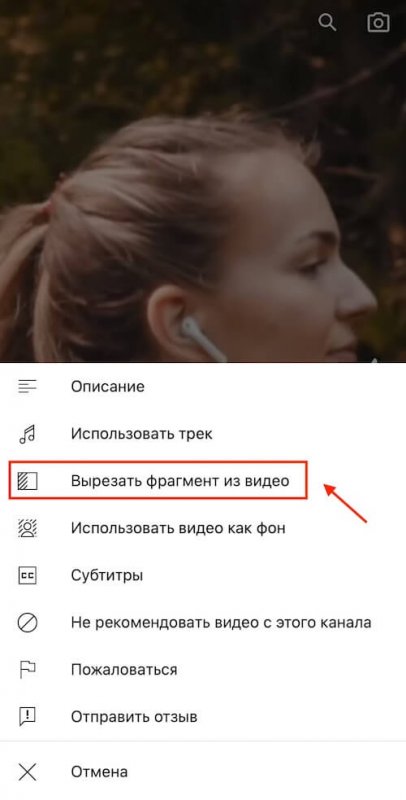 Чтобы использовать функцию Cut откройте нужный ролик, нажмите «Вырезать фрагмент из видео».