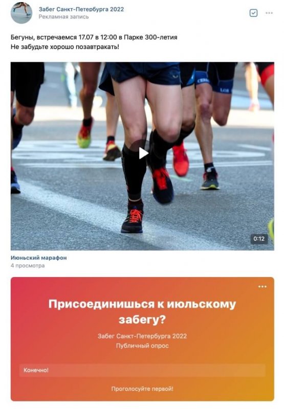 Например, после того, как изменения вступят в силу, нельзя будет использовать в рекламной записи большое фото и опрос. Исключение — размещения через маркет-платформу.