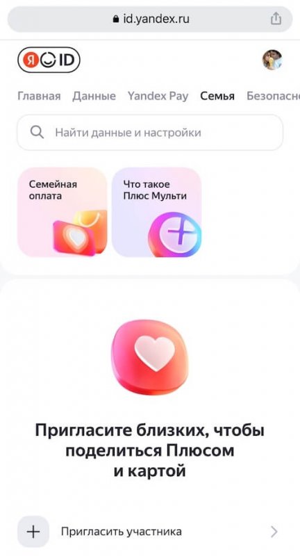 Данный раздел можно использовать, чтобы добавить своих друзей или родственников, для подключения им подписки Плюс или семейной карту для платежей. С помощью семейной карты пользователи могут совершать платежи в Лавке, Еде и других сервисах Яндекса.