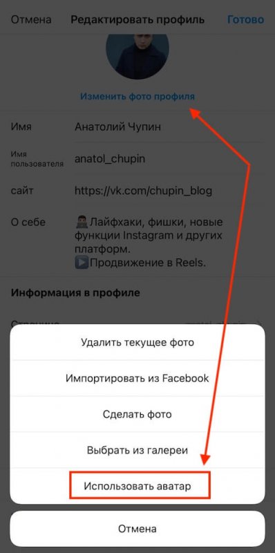 Как поставить цифровой аватар на фото профиля в Инстаграм*
