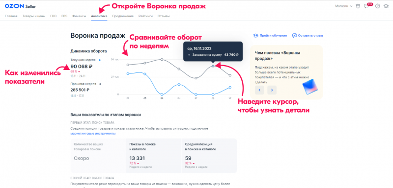 Ozon дополнил аналитику для продавцов разделом «Воронка продаж» - «Новости»