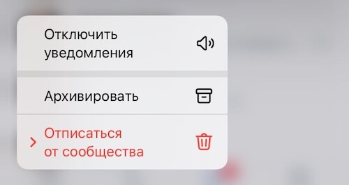 Шаг 4. Если вы хотите отключить уведомление или скрыть сообщество, зажмите тапом на его аватаре и в выпадающем меню выберите соответствующий пункт.