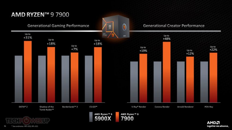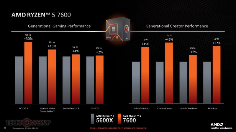 Даже при номинальных настройках все три новых процессора Ryzen 7000 демонстрируют существенную прибавку производительности на фоне моделей Ryzen 5 5600, Ryzen 7 5700X и Ryzen 9 5900X. В играх она составляет до 31 %, а в рабочих приложениях — до 53 %. По крайней мере так заявляет AMD по итогам своих внутренних тестов.