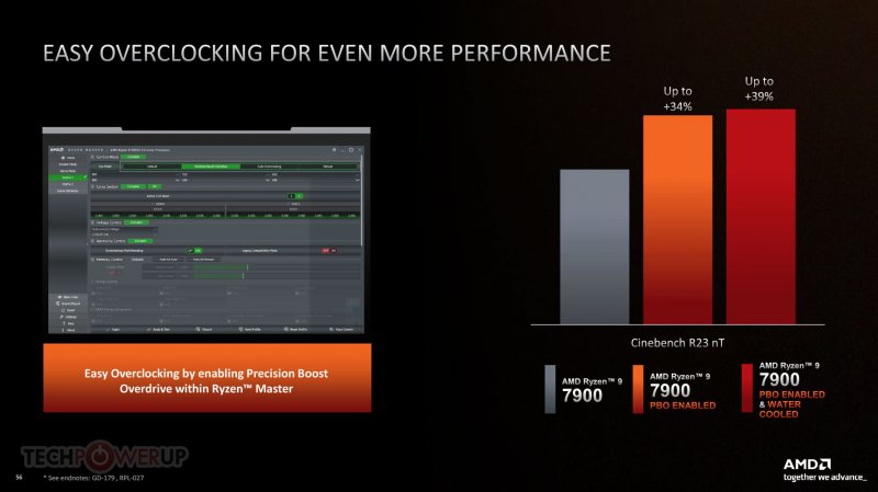 AMD заявляет, что благодаря технологии PBO (Precision Boost Overdrive) у представленных процессоров можно увеличить максимальный показатель TDP, что приведёт к увеличению их производительности до 35 %. А при использовании качественной жидкостной системы охлаждения производительность можно будет увеличить ещё выше.