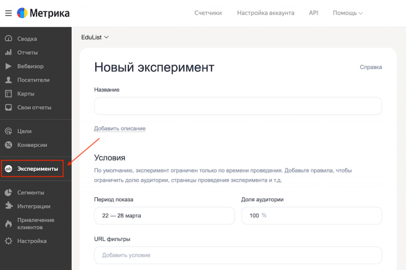 В Яндекс.Метрике появилась возможность проводить A/B-эксперименты.