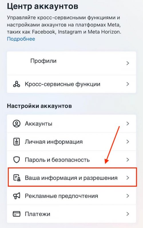 Шаг 1. Откройте настройки аккаунта и зайдите в «Центр аккаунтов».