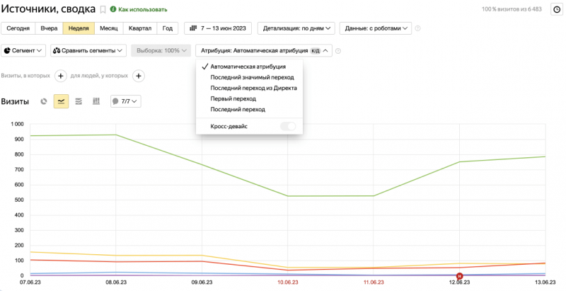 Увидеть статистику можно и в Директе — в Мастере отчётов и на странице «Обзор». Для этого в блоке «Атрибуция» выберите «Автоматическая».