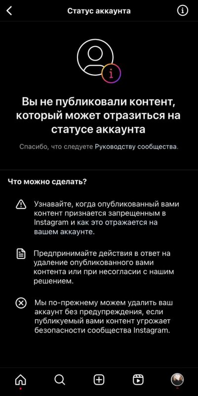 Чтобы люди лучше понимали, что происходит с их аккаунтом, Instagram* создал раздел «Статус аккаунта». В нём можно узнать, почему алгоритм не рекомендует ваш контент и обжаловать решение, если считаете, что получили теневой бан незаслуженно.