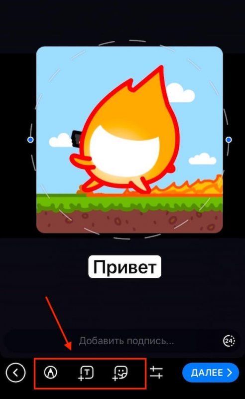 Шаг 4. Используйте панель инструментов, чтобы добавить дополнительные элементы: рисунок, текст или стикеры.
