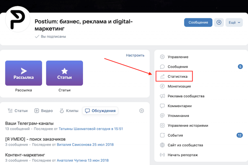 Шаг 2. В боковом меню справа нажмите «Статистика».