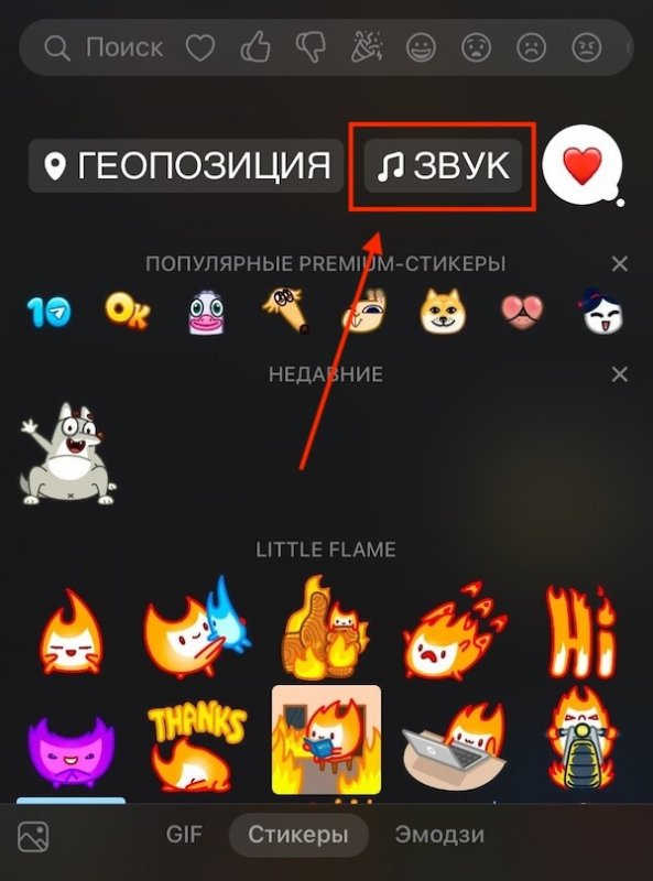 Шаг 2. На появившейся панели стикеров выберите стикер «Звук».