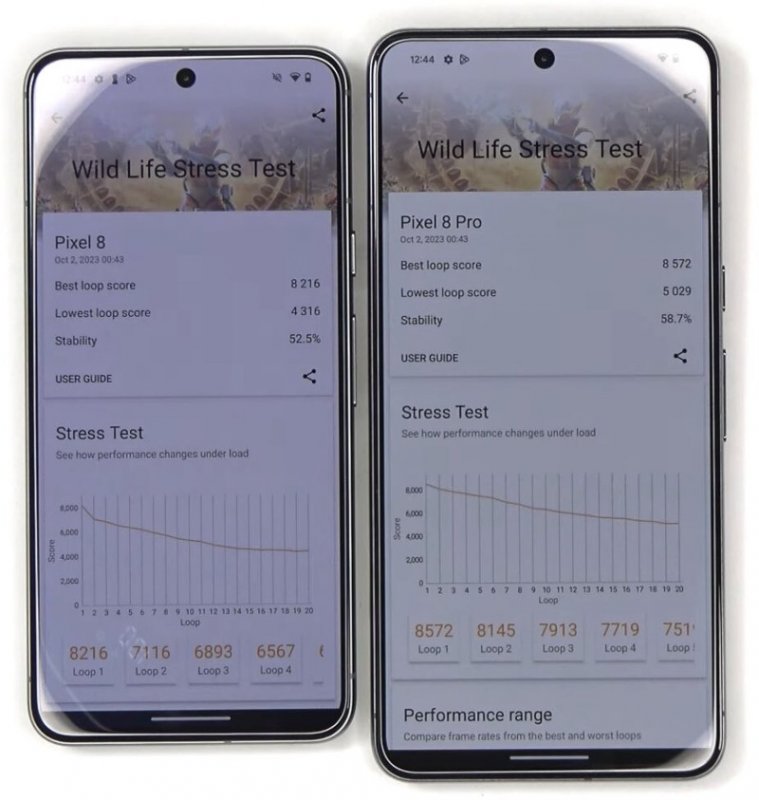 Вероятная причина такого положения вещей — выбор Samsung в качестве производителя Google Tensor G3: корейский производитель помог в кастомизации платформы, но его техпроцесс 4LPP (4 нм) уступает технологии N4P от TSMC, которая используется при выпуске Snapdragon 8 Gen 2. В графическом тесте 3DMark Wild Life Stress Test модели Google Pixel 8 и Pixel 8 Pro выступили заметно слабее всех актуальных флагманов, оказавшись даже хуже прошлогоднего Pixel 7 Pro.