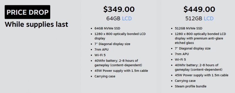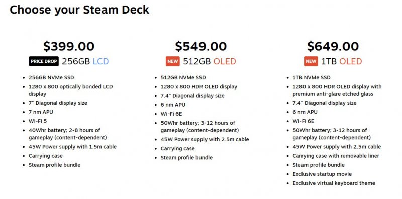 В то же время компания сообщила, что снизила цены на приставку с 7-дюймовым IPS-экраном. Теперь версия с 64 Гбайт постоянной памяти оценивается в $349, версия на 256 Гбайт постоянной памяти — в $399, а вариант с 512 Гбайт постоянной памяти — в $449. Кроме того, компания снизила стоимость док-станции Steam Deck Docking Station до $79.